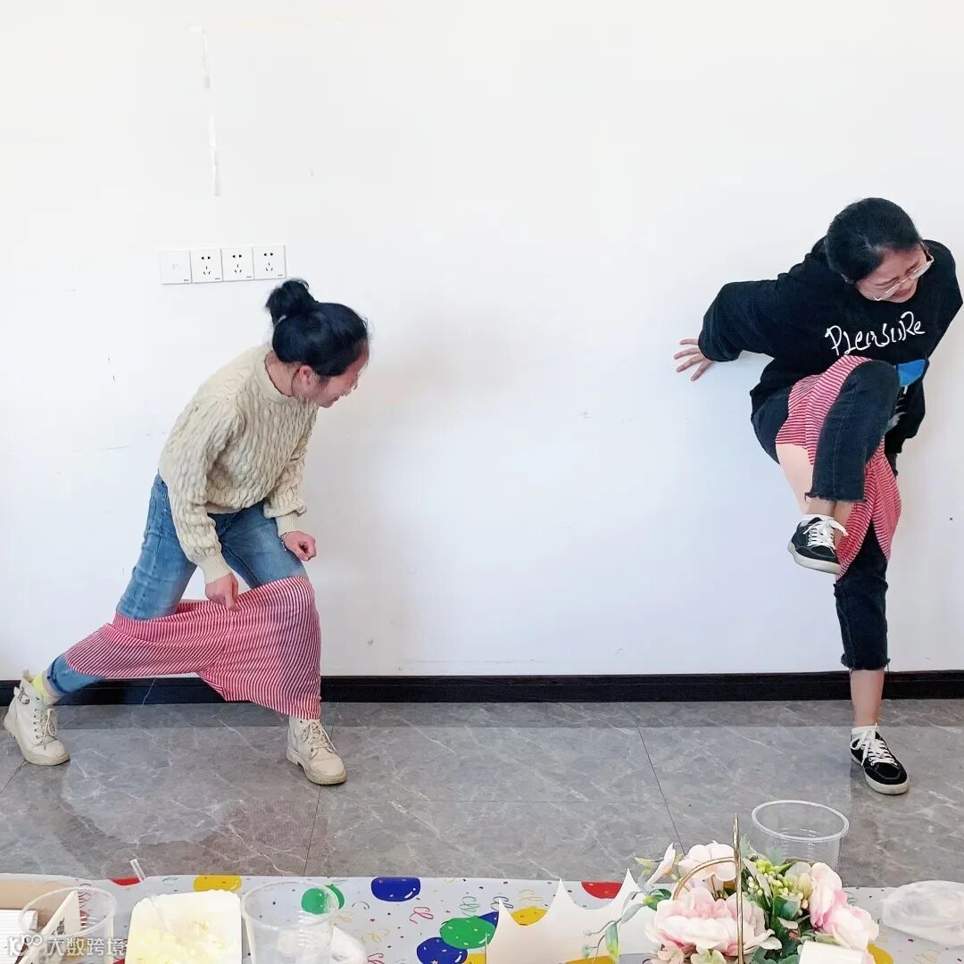 大家进行了“无手穿裤”的小游戏