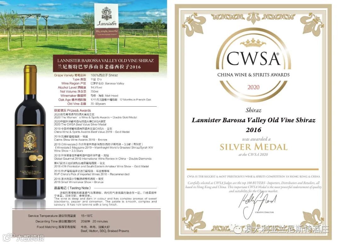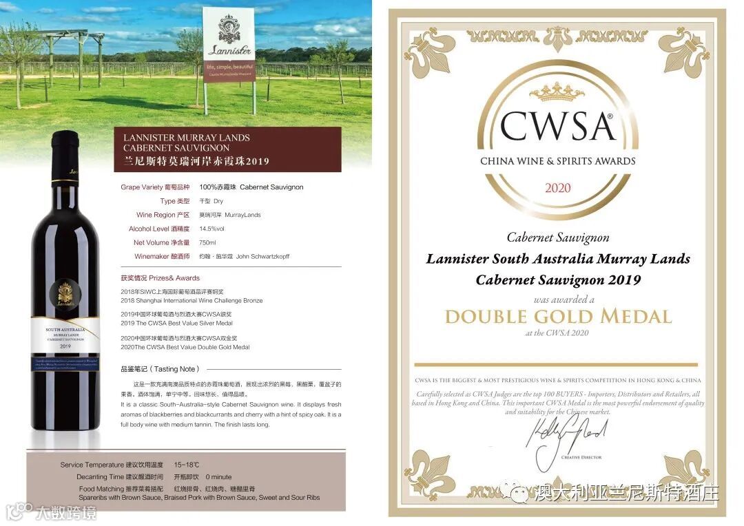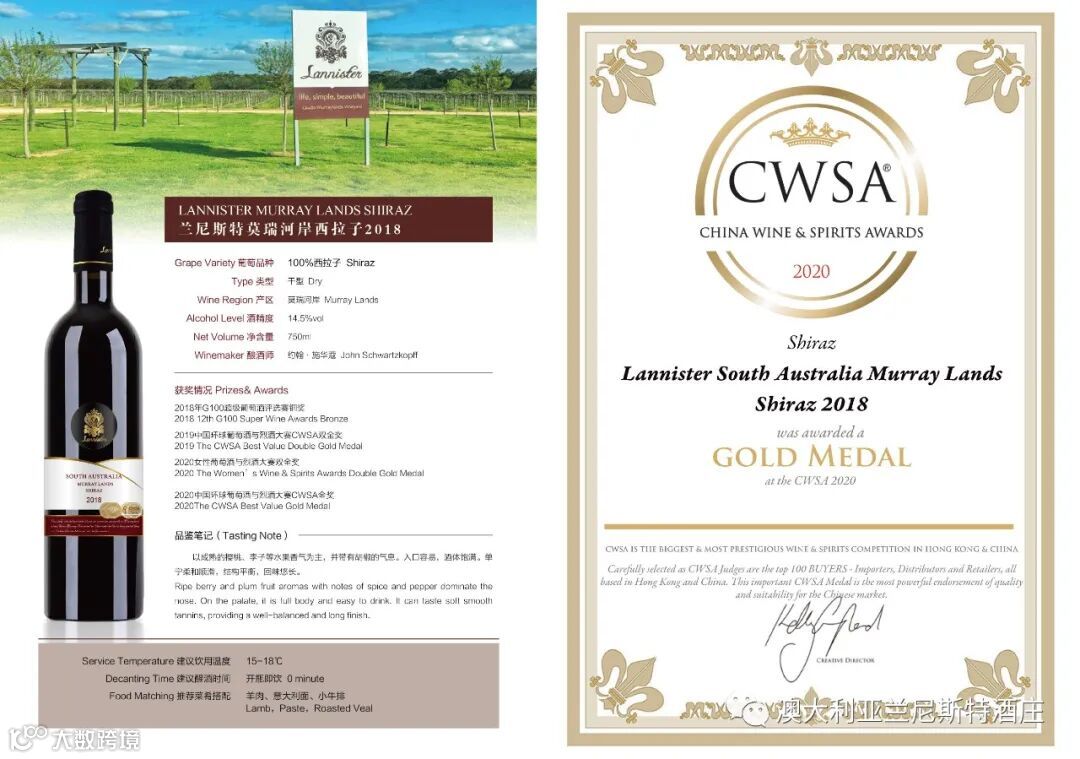 兰尼斯特葡萄酒集团的市场总监James Wu在采访时说到:“获得CWSA2020年赛事奖项让我们整个团队都感到开心和自豪。CWSA的三盲比赛方式让每瓶参赛的葡萄酒都按照统一的标准来评定。