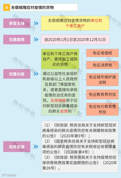 疫情期间,为了支持新型冠状病毒疫情防控以及支持个体工商户复工复产,国家税务总局还出台了一系列免征政策,具体如下: