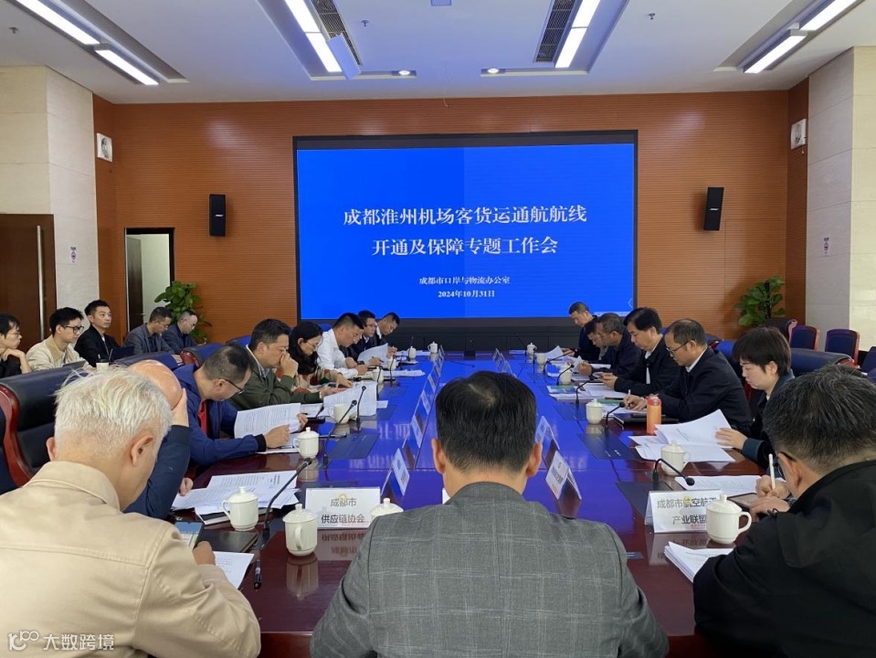 10月31日,曾虎主持召开成都淮州机场客货运通航航线开通及保障专题工作会,传达学习省、市关于开通低空物流航线的相关要求,组织军民航指导单位、市级相关部门、重点企业、联盟、协会等单位,会商成都淮州机场客货运通航航线开通方案。