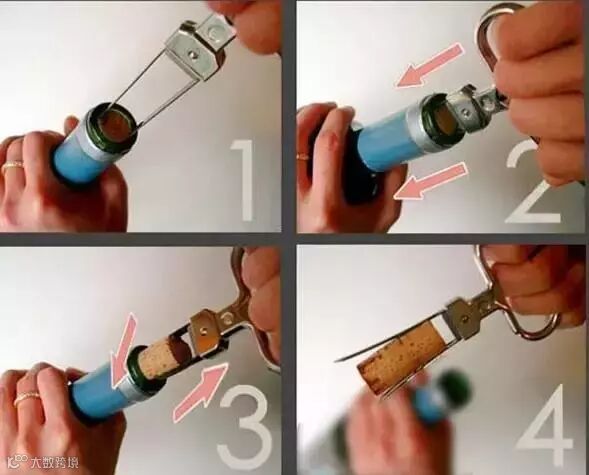 ③ 老酒开瓶器的两片酒刀会紧紧夹住软木塞,这时候你只需要缓缓将其旋出来就完成开瓶了。