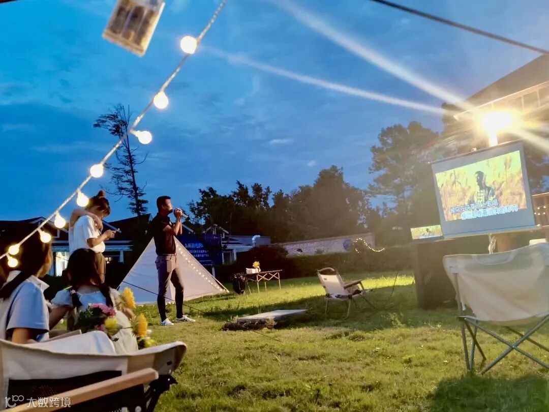 在星空下,大家或是低声交谈