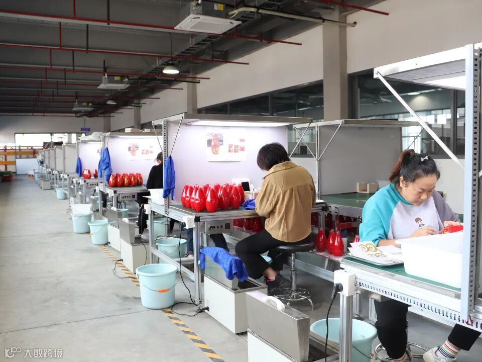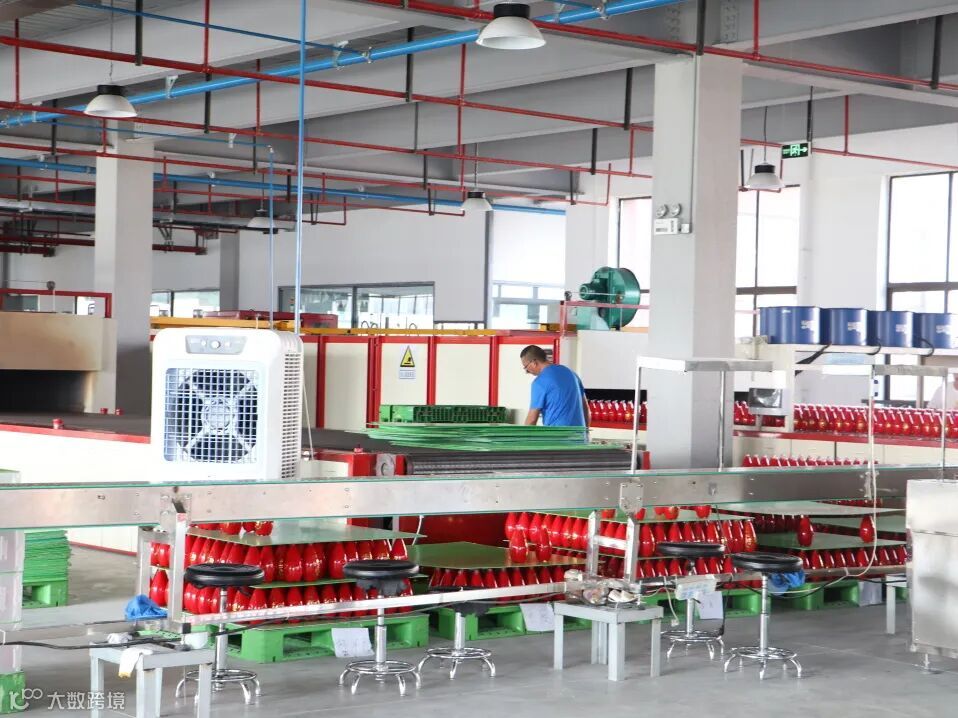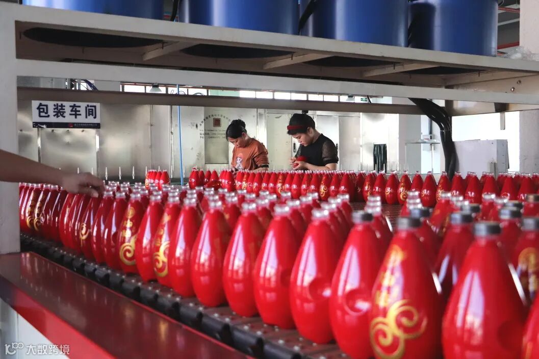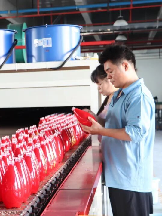 成都永力为智能科技有限公司生产车间内,喷涂、贴标、烤标、包装······智能化玻瓶后加工生产线上,工人们各司其职,对玻瓶进行工序操作,一派加紧生产、热火朝天的景象。