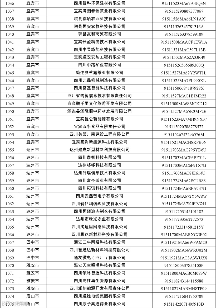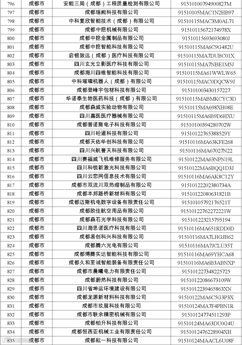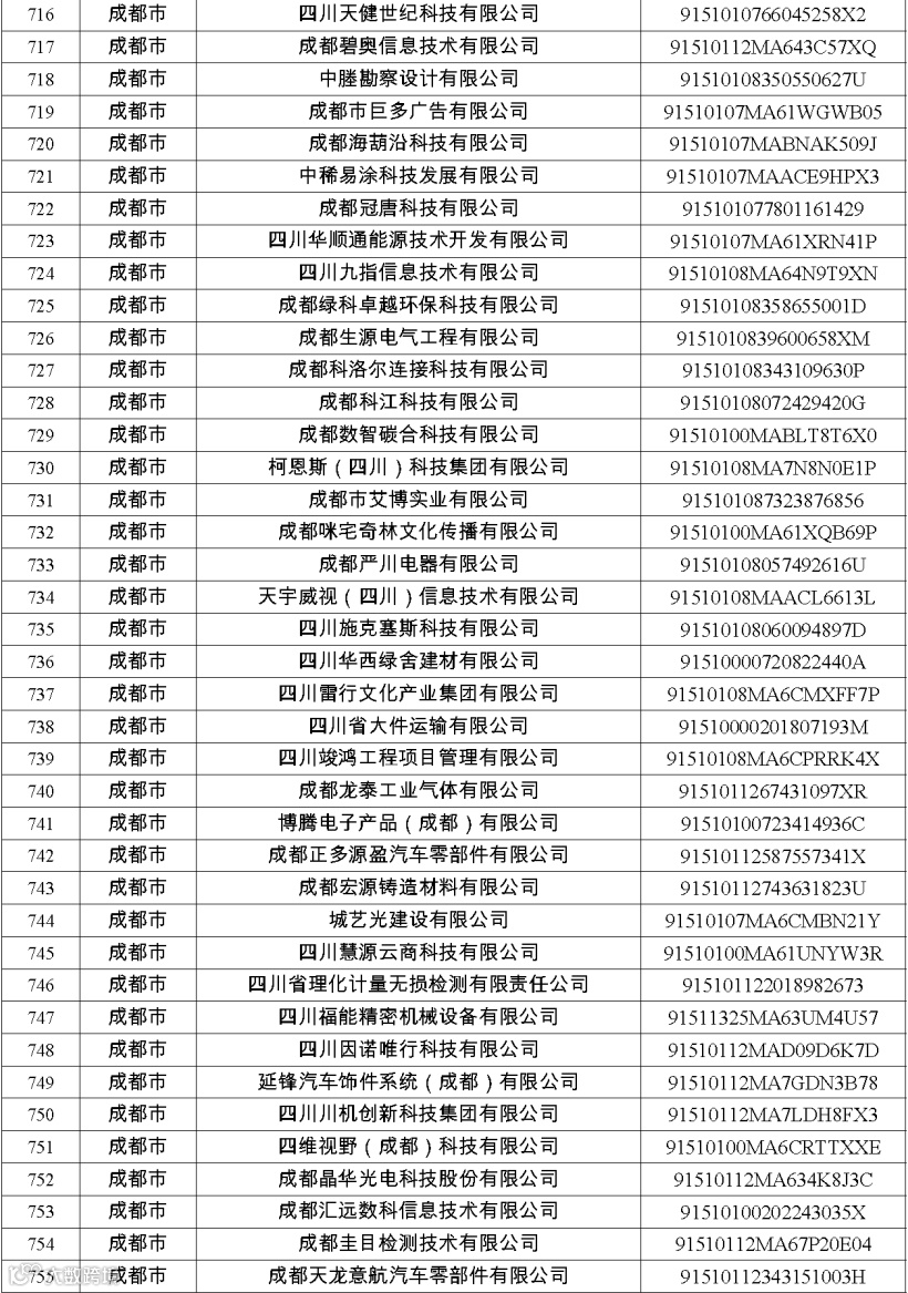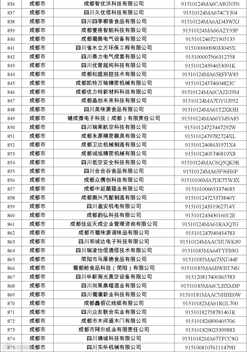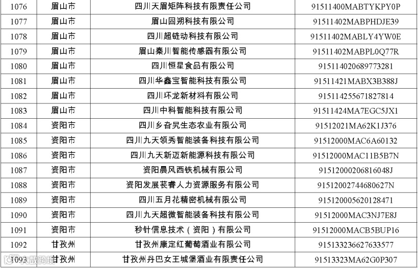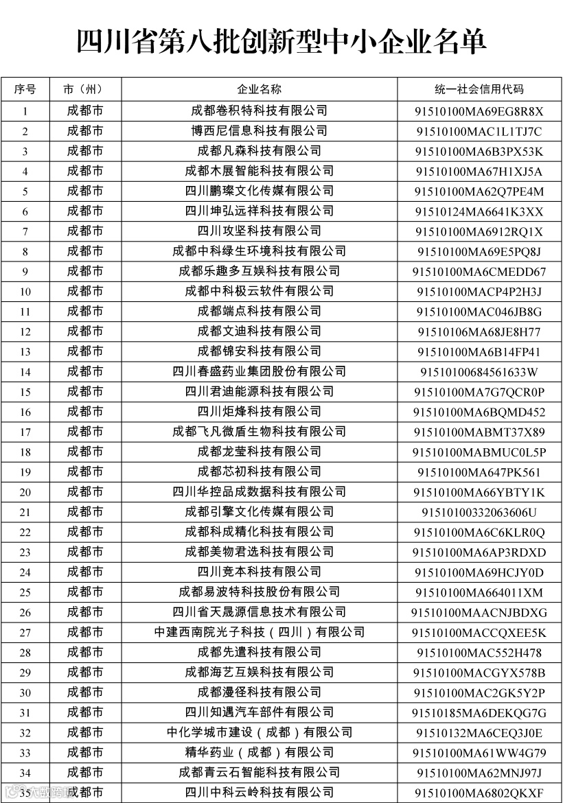 四川省第八批创新型中小企业名单