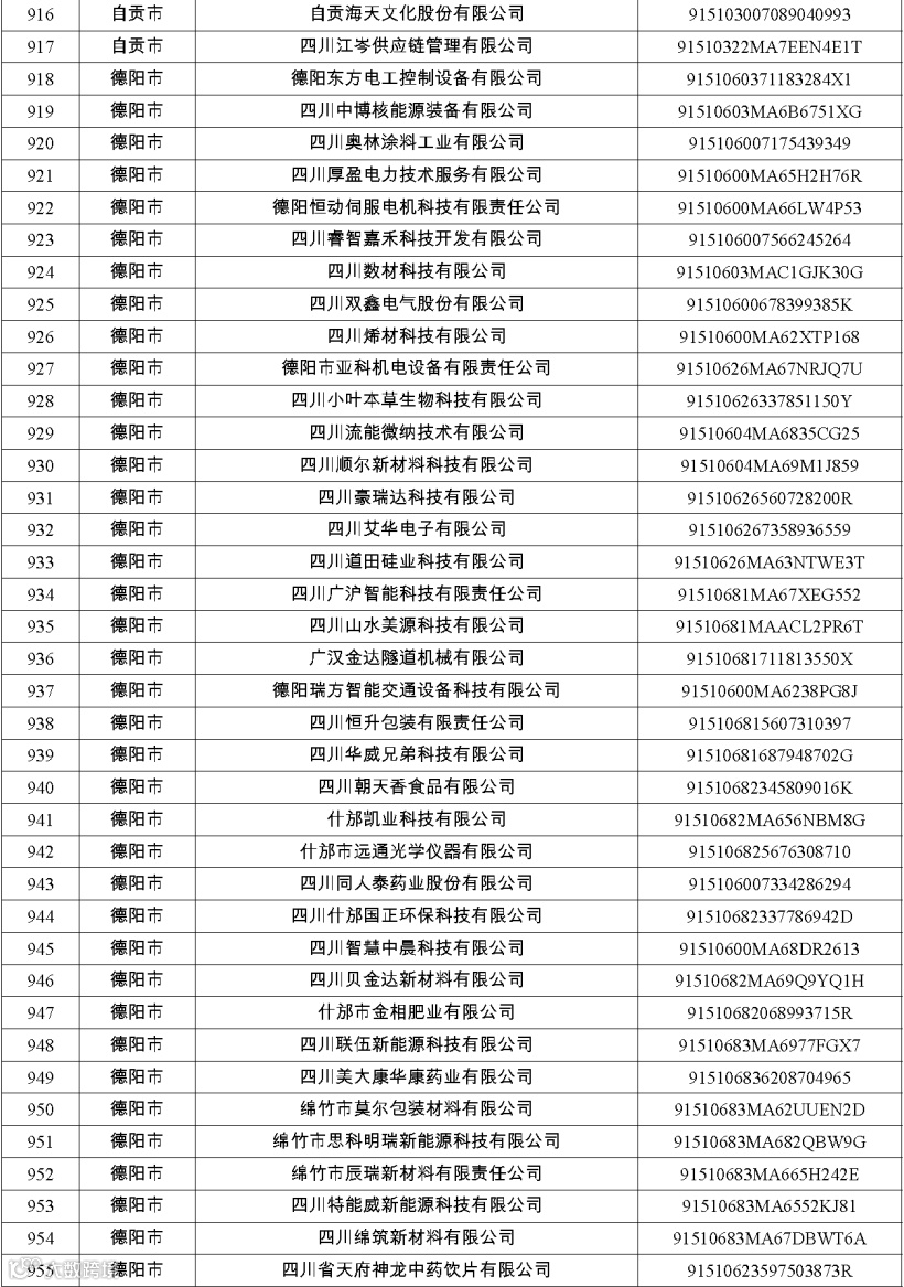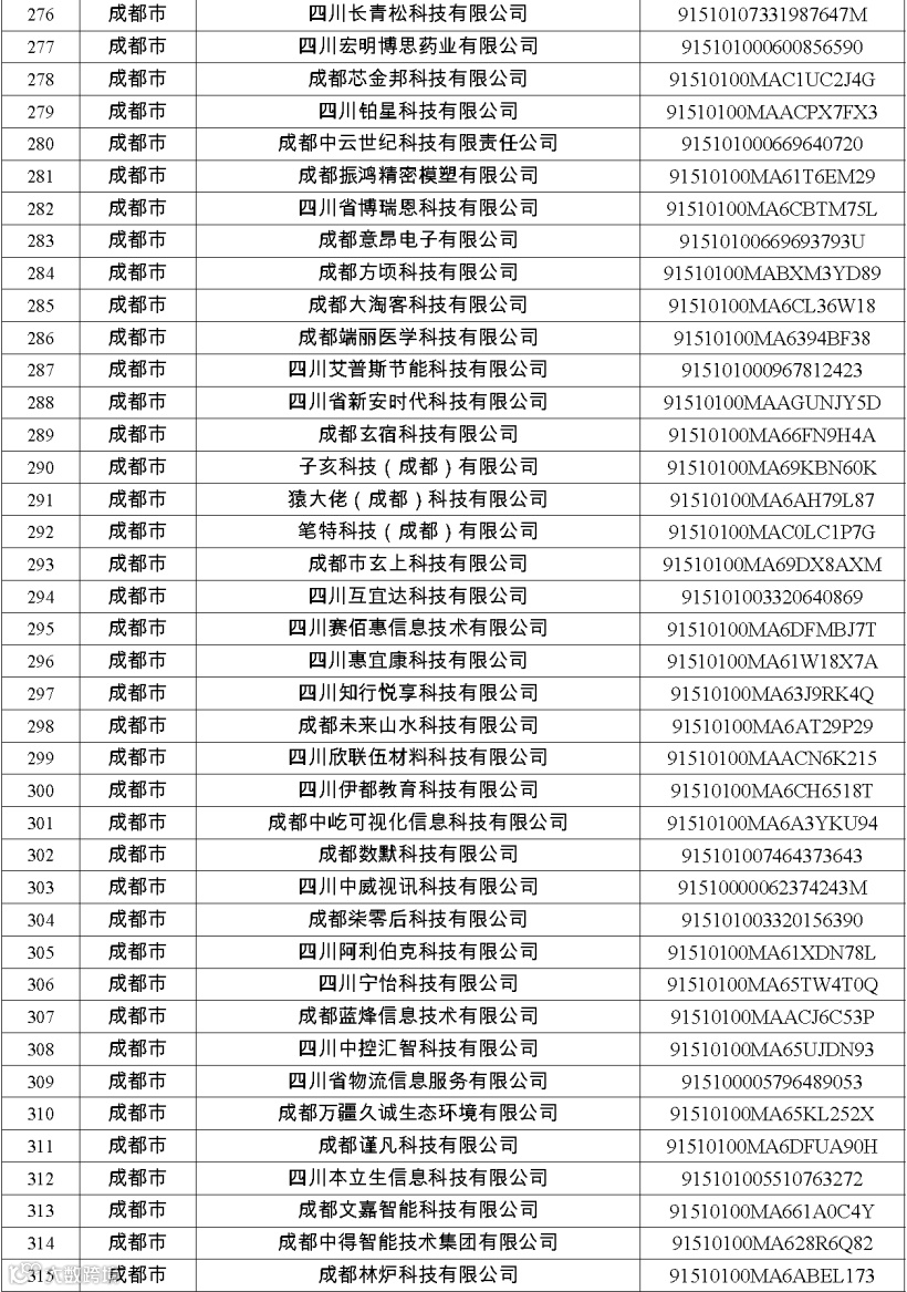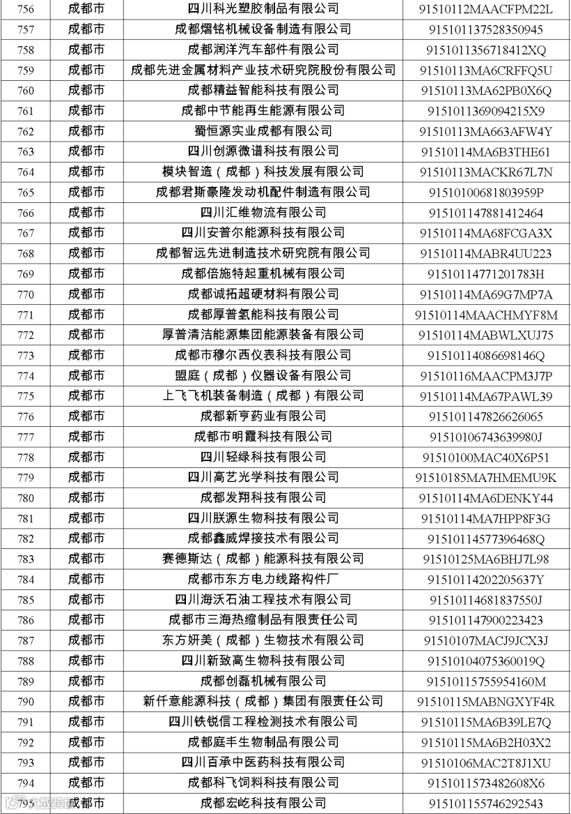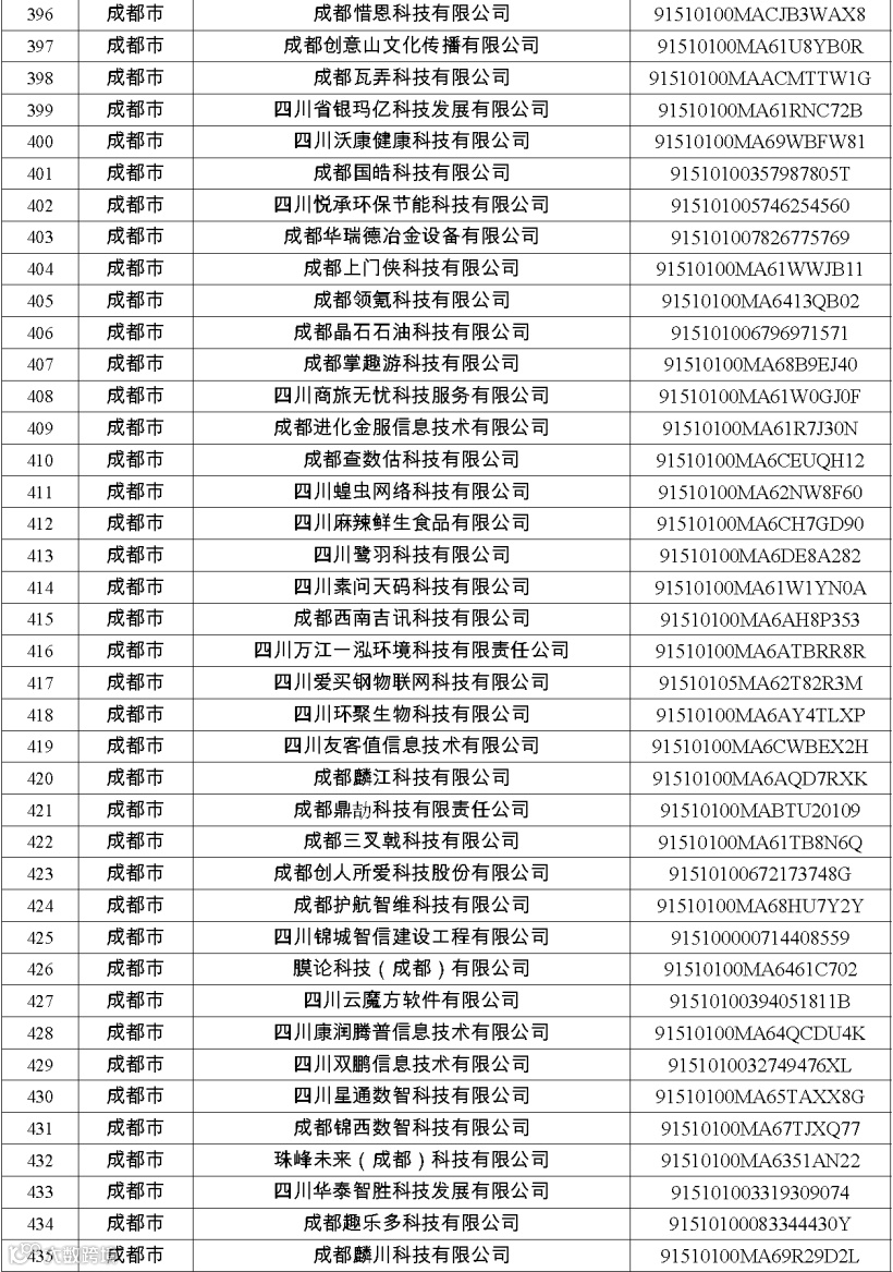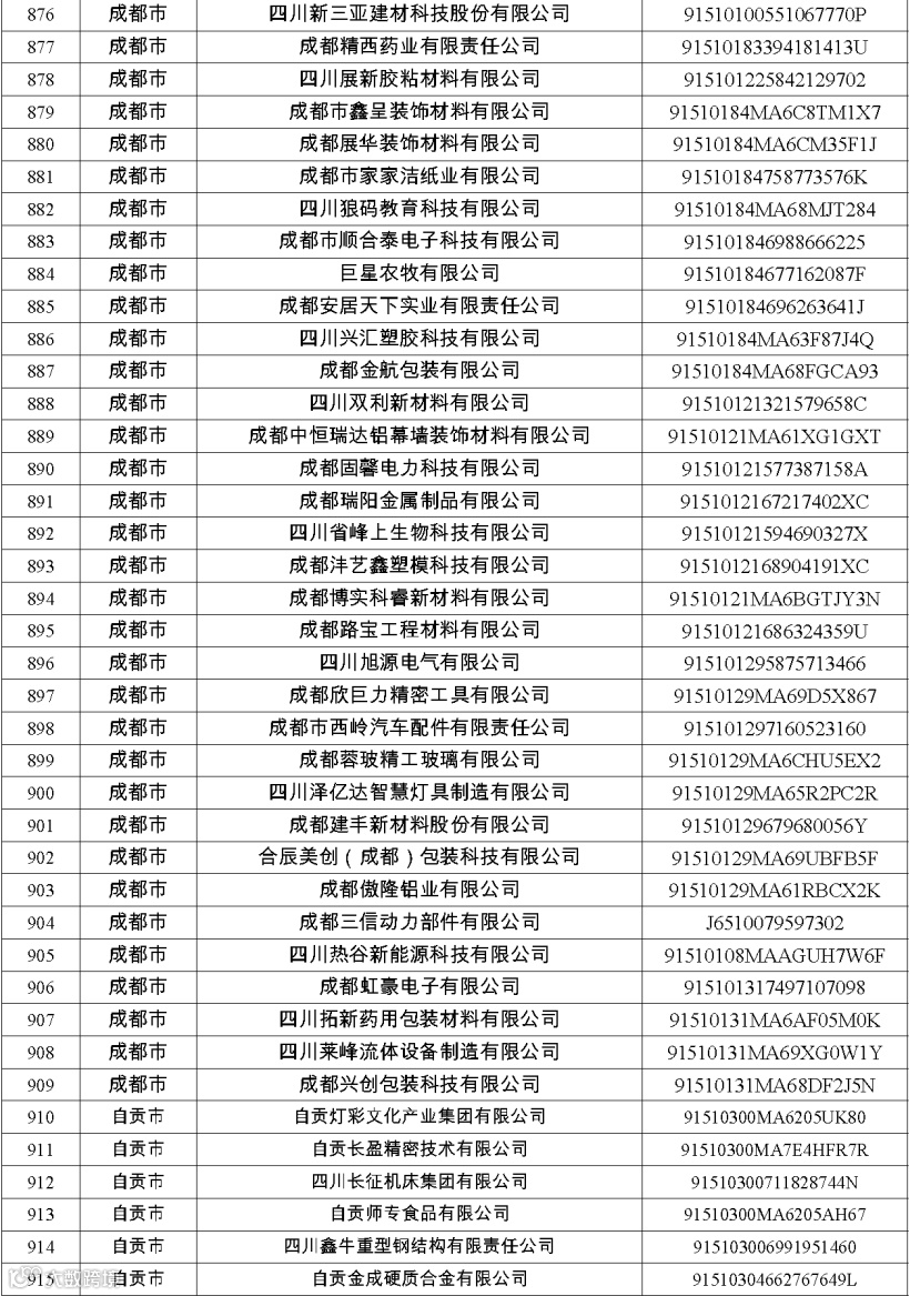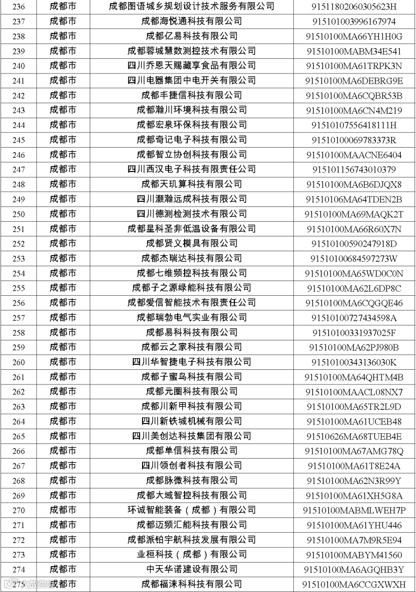 四川省第八批创新型中小企业名单