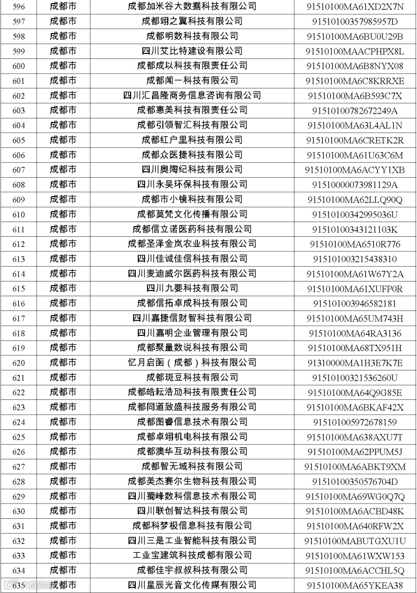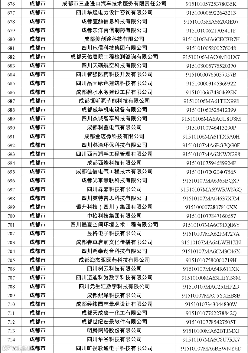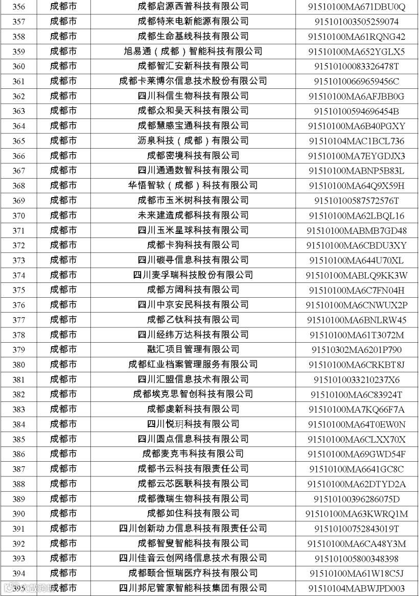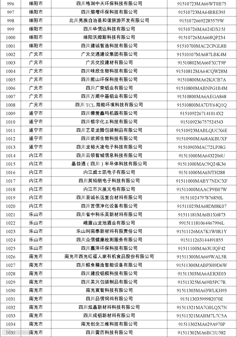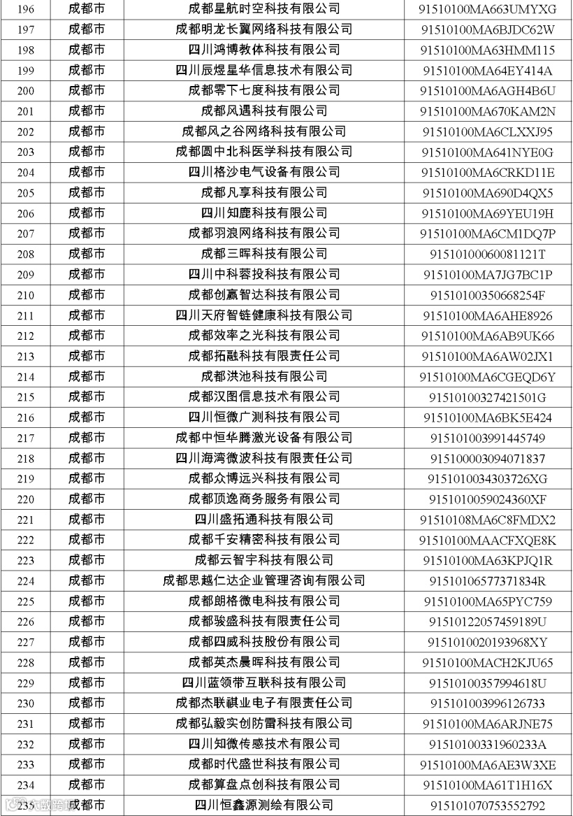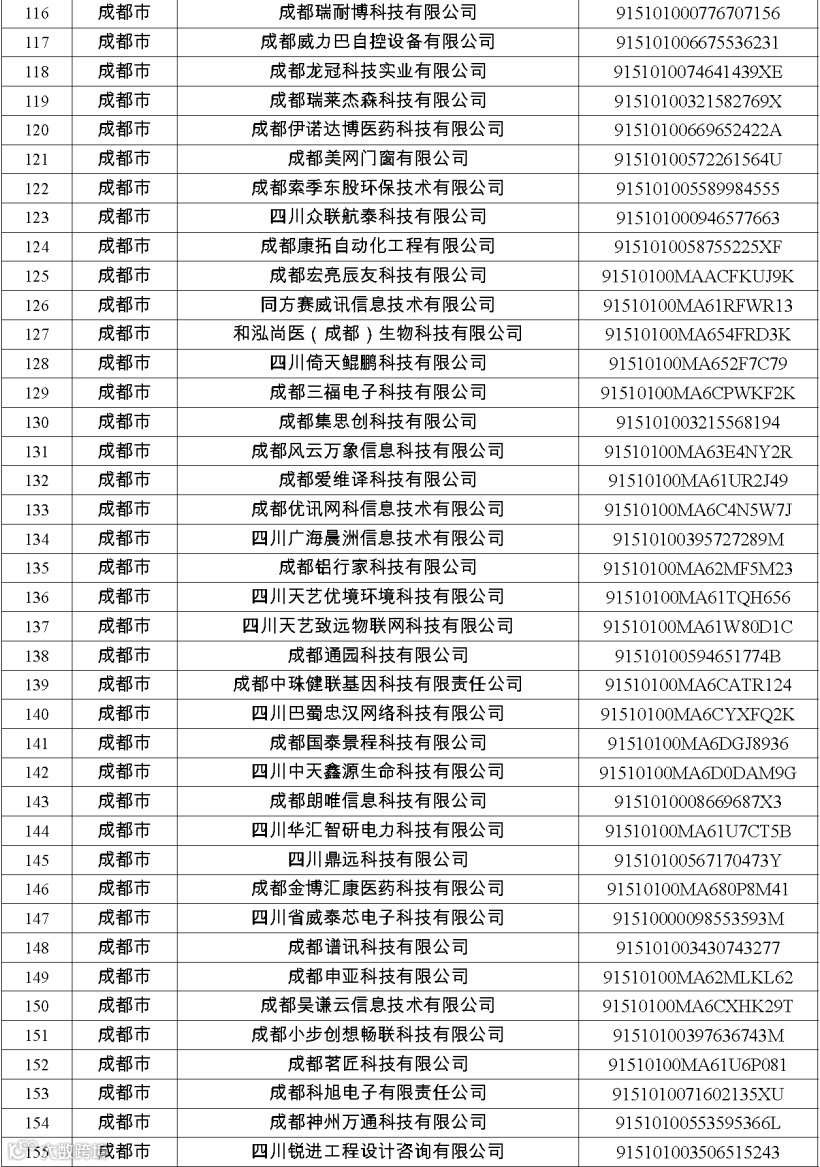 四川省第八批创新型中小企业名单
