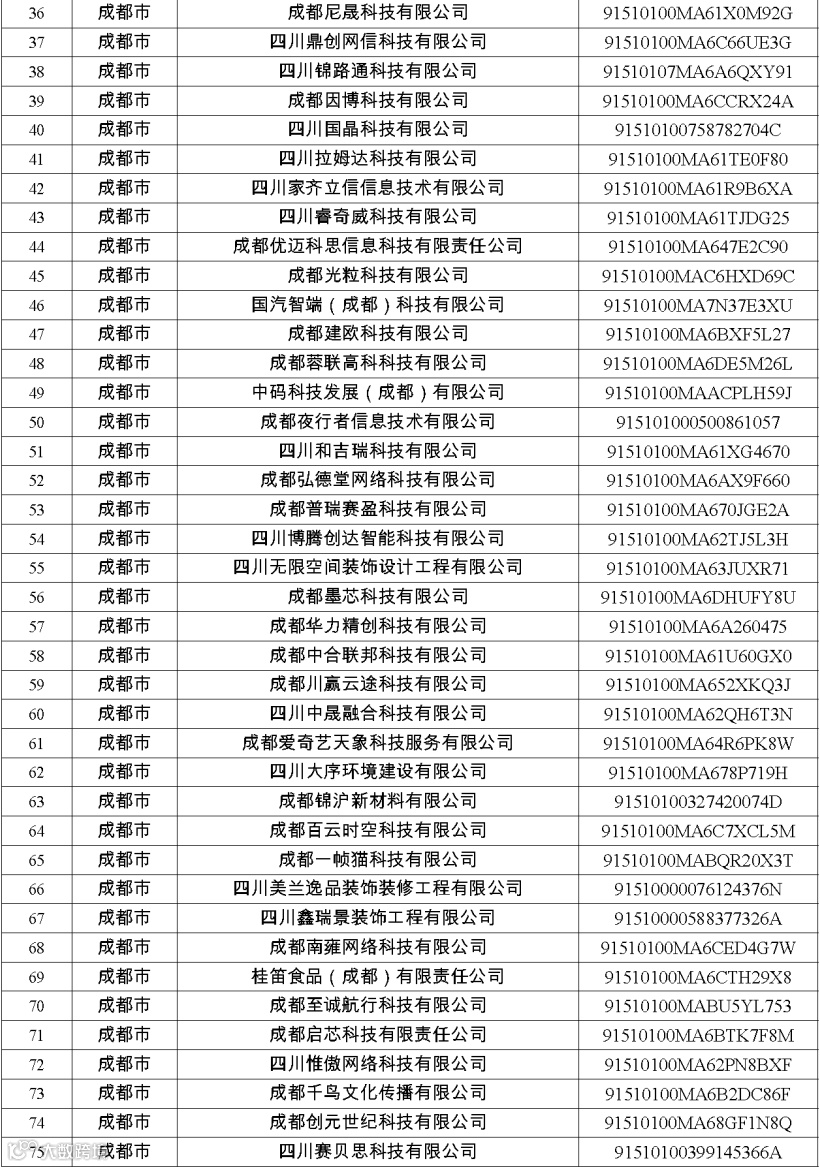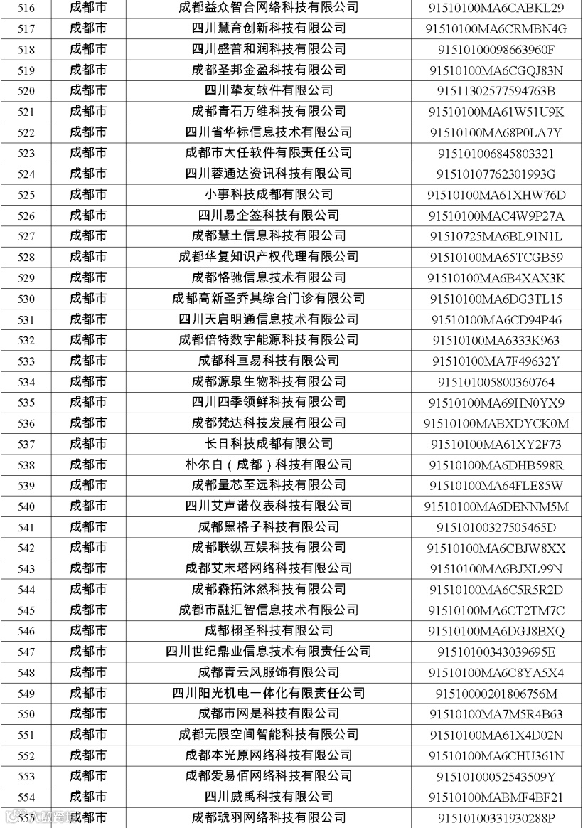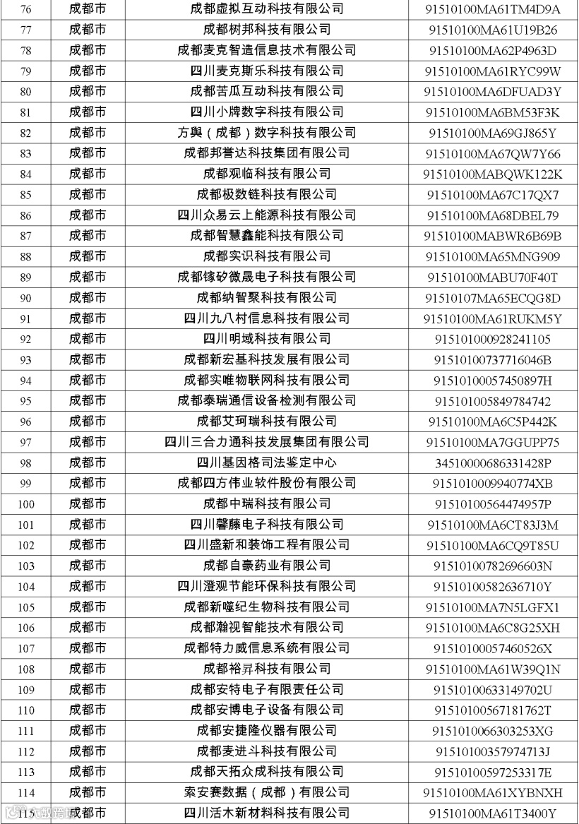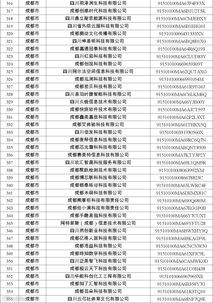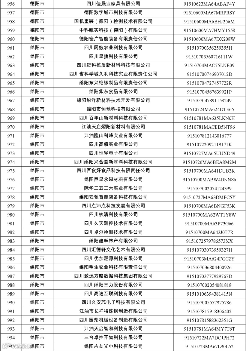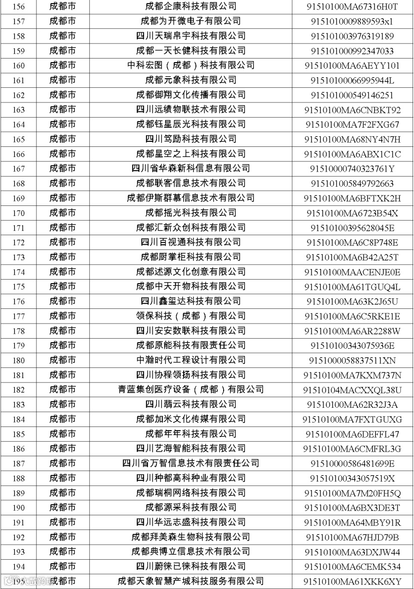 四川省第八批创新型中小企业名单