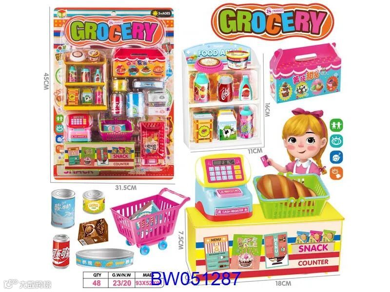 Take the shopping cart to purchase different kinds of food, let children enjoy the fun of shopping (some are equipped with cash register)