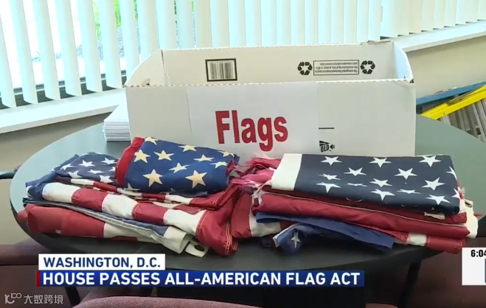 ABC称,几年来,柯林斯和布朗一直在推动美国国旗在美国生产。此前,类似的法案曾在参议院通过,但在众议院受阻。报道提到,2017年美国进口了约1000万面美国国旗,其中 99.5%来自中国。约1000万面美国国旗包括进口到美国的所有美国国旗,而不仅仅是联邦政府购买的国旗。
