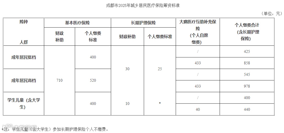 (2)学生儿童(含大学生)参加成都市2025年城乡居民长期护理保险,个人不缴费。
