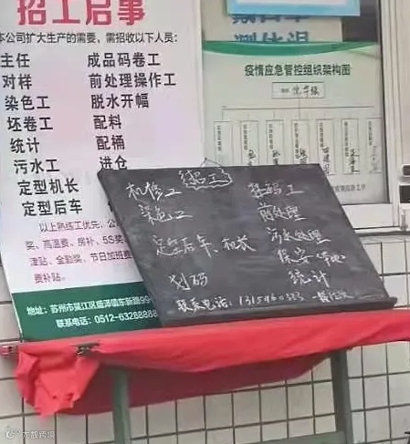 每年春节过后,市场就会迎来招工旺季。纺织行业工人的流动性很高,这是很多开厂老板每年开年后头疼的问题。你会发现最近厂区门口都贴满了“招挡车工、保全工”的招工牌。为了尽快招到人,很多工厂都开出了“月入过万、增加福利、补贴路费、推荐奖励”这样的条件来吸引工人。