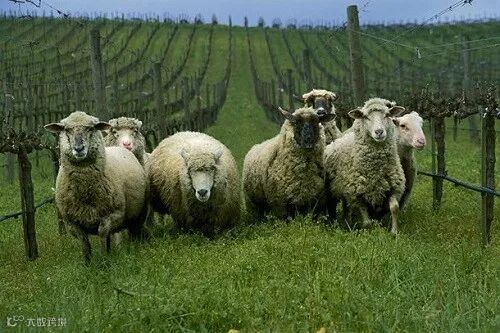 当然,除了颜值担当的“白马王子”和“黑马骑士”,呆萌的绵羊也是葡萄园动物卫士家族里的得力助手。放养的羊群在葡萄园中自由游荡时,会啃食葡萄树底部的杂草,留下的粪便还能滋养葡萄园的土壤。
