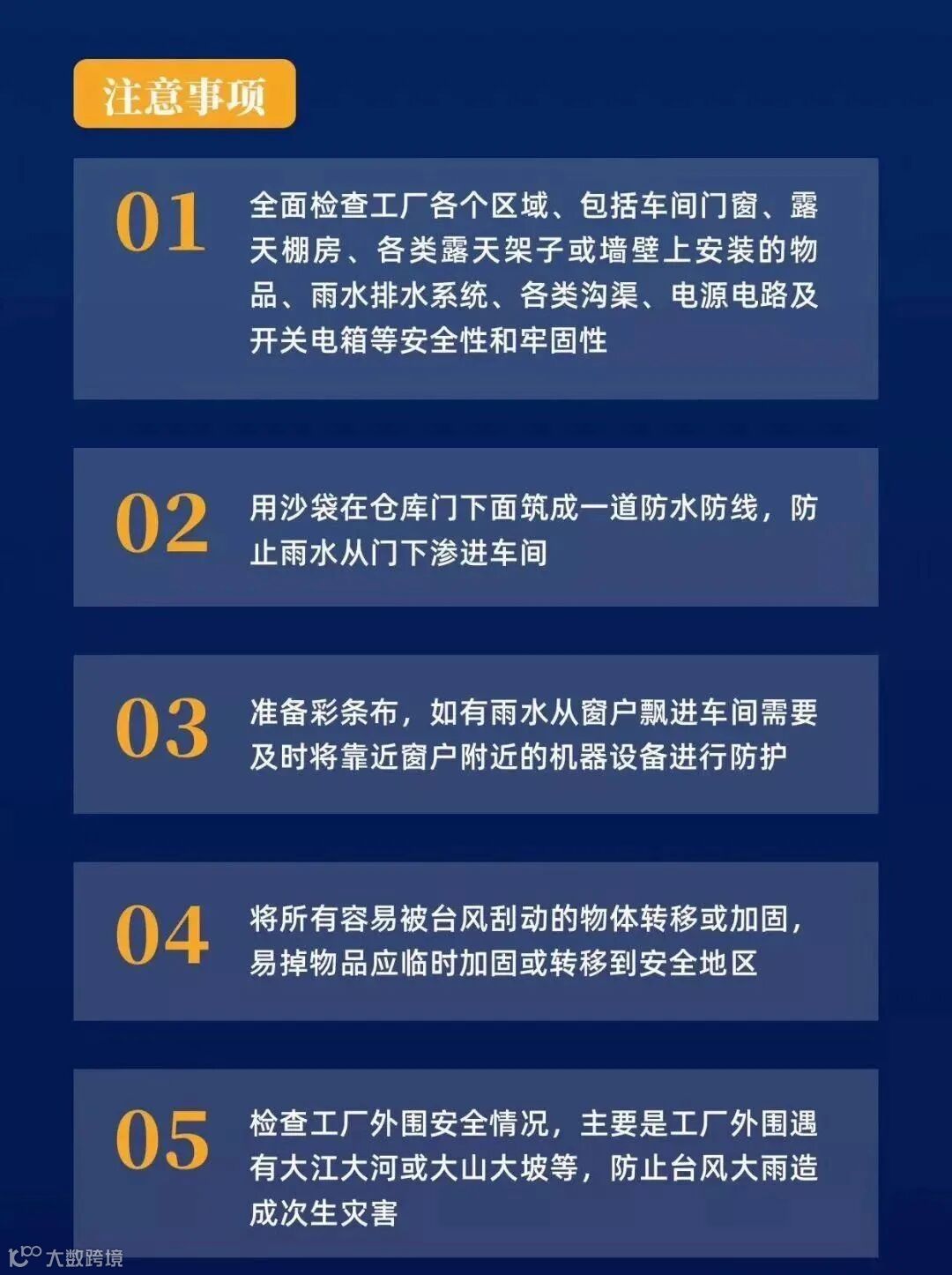 在台风天气里,比较容易出现的问题是:厂房破损;车间被水淹了,机器/货物浸水报废;交通物流停运、发货受阻;停水停电、被迫停产……