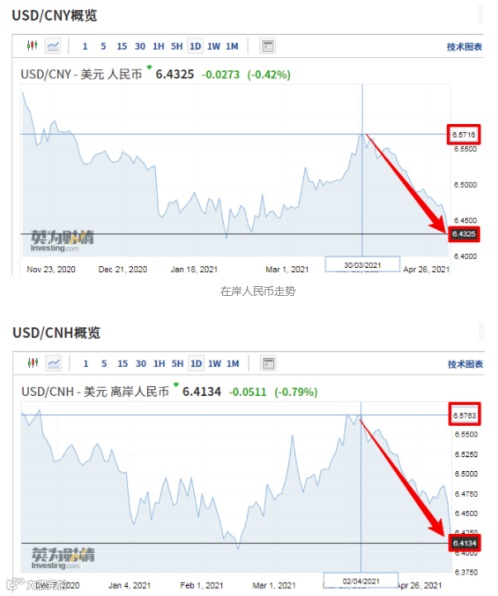 截至北京时间5月10日16:30,在岸人民币对美元收盘报6.4173,较上一交易日涨416个基点,创2018年6月以来新高。当日人民币兑美元中间价报6.4425,调升253个基点,创2月10日来新高。2月下旬开始,美元一度因为美国疫苗注射计划的快速推进而走强,美元/人民币一度达到6.57的阶段性高位,但随着全球疫苗普及计划推进、美债收益率回落,4月开始美元重拾颓势。截至当日18:16,美元指数报90.17左右,创近十周新低。