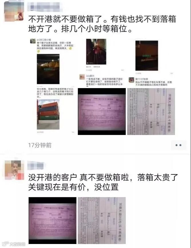 还有出口商表示,已经在金运达排队了4天,但还是有800多号,崩溃中。让货代帮忙,货代只会说要么等要么过完年出,好无语。