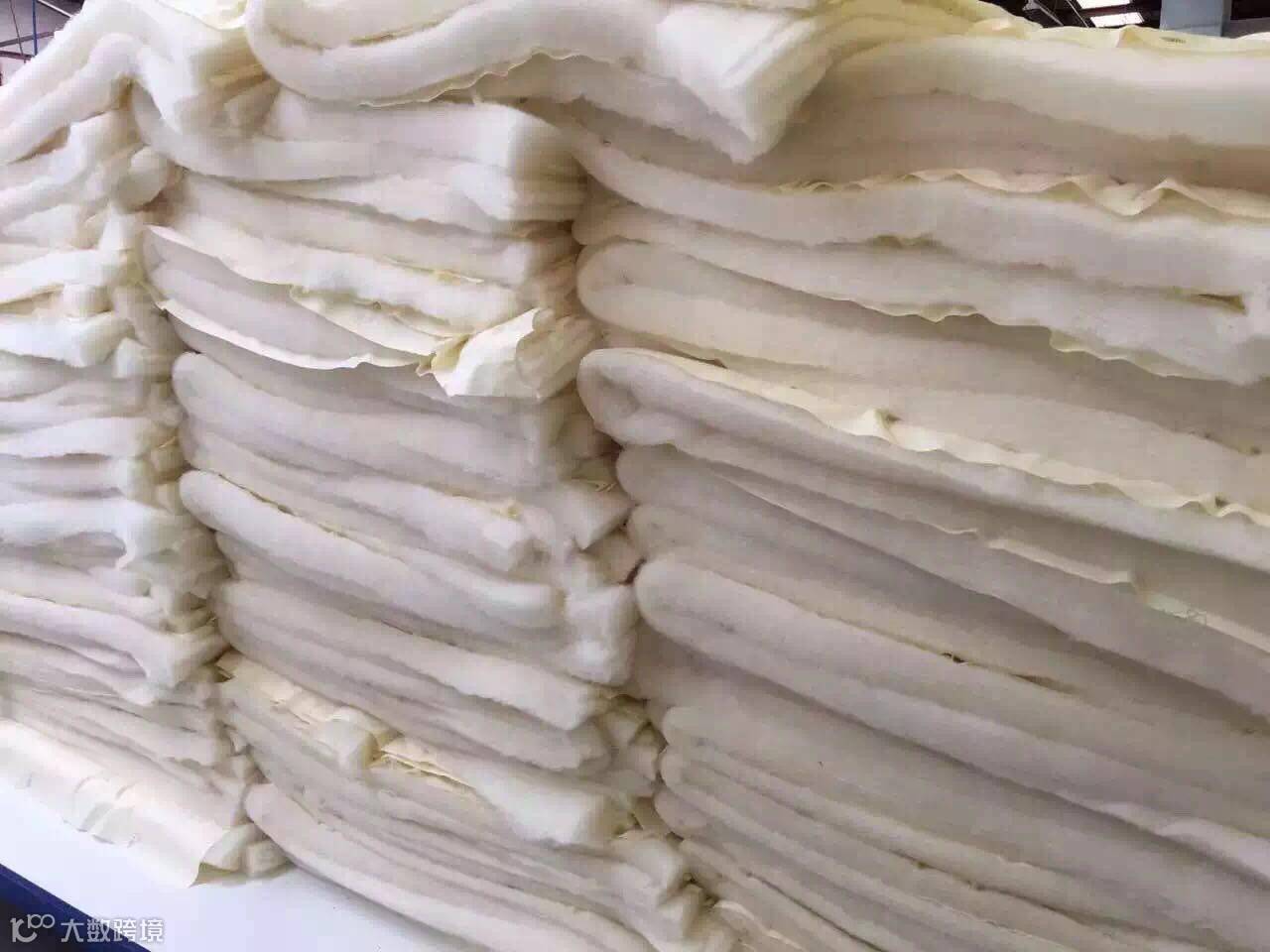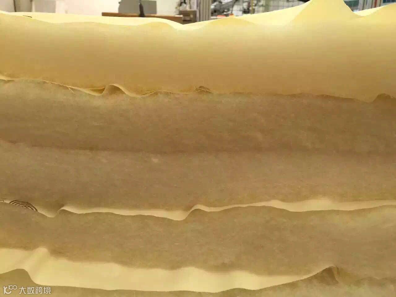 3,看包裹布料。外层布一定不能够是有涂层的(类似防光窗帘的那种),这样就很有可能内里羊毛油脂率、杂质去除都不过关,用外层来防止外渗。