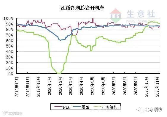 开机率方面,江浙织机综合开机率稍有下滑至91%附近。企业订单较少,销量下降,库存超过1个月,企业已有限产计划。若市场继续萎缩,或有企业采取限产措施,形势不容乐观。订单接近1个月,布产品库存1个月左右。近期坯布价格处于下行态势,预计到春节前,市场整体仍将维持走淡趋势。
