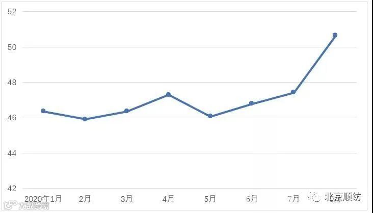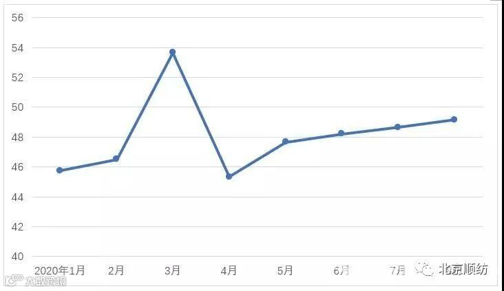说明:中国棉纺织行业景气指数采集自全国近500家次棉纺织企业,参考国家制造业PMI等指数制定方式,通过对多个主要指标加权计算得出,当指数高于50,表示棉纺织行业本月景气程度好于上月,低于50则表示本月景气程度不及上月。