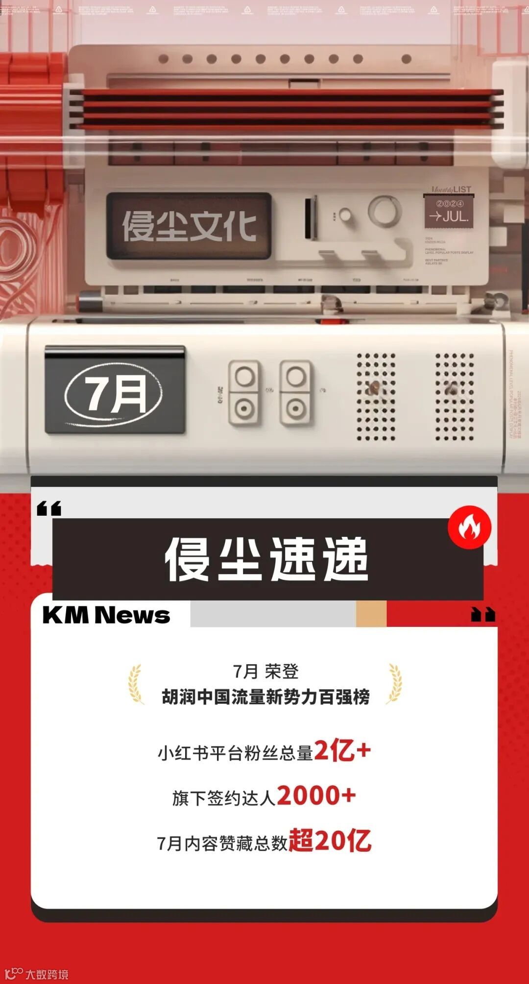 7月江虹园区企业【侵尘文化】荣登胡润中国流量新势力百强榜。