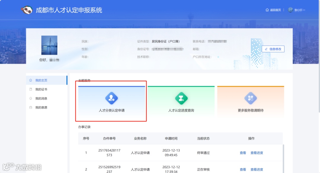 成都市人才认定申报系统