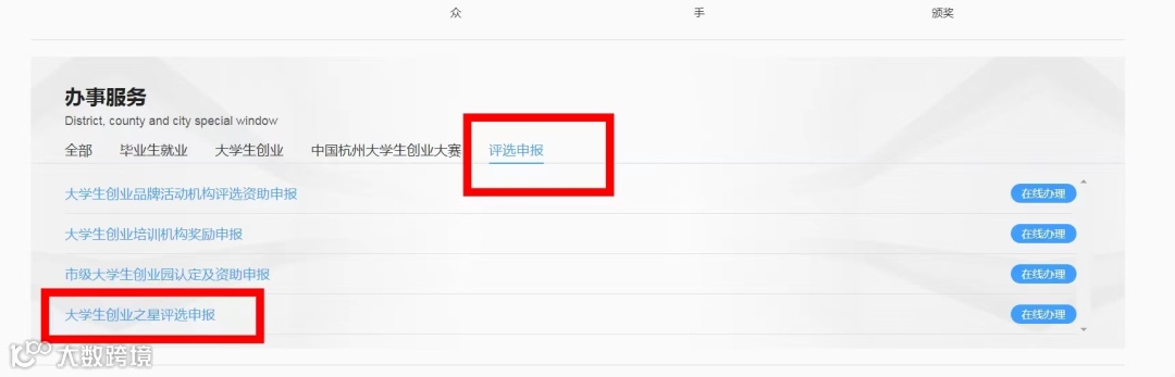 选择“办事服务-评选申报-大学生创业之星评选申报”