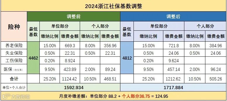 2024年浙江省社保缴费基数新变化