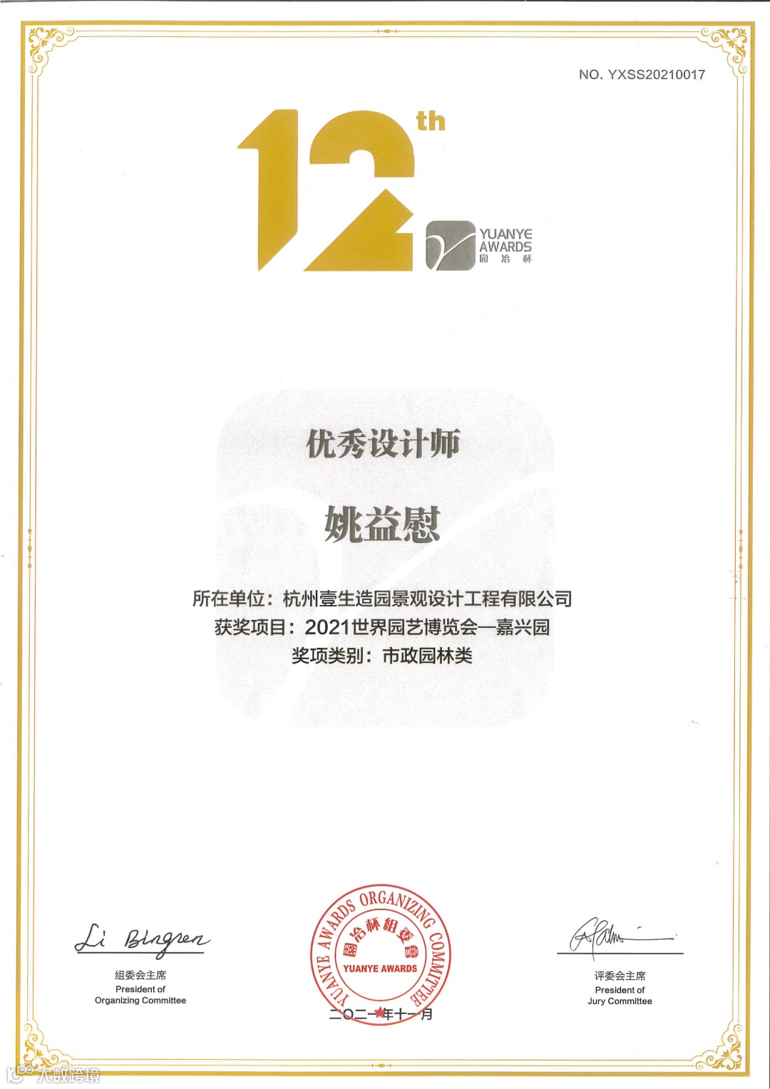 嘉兴园设计师姚益慰被评为——优秀设计师