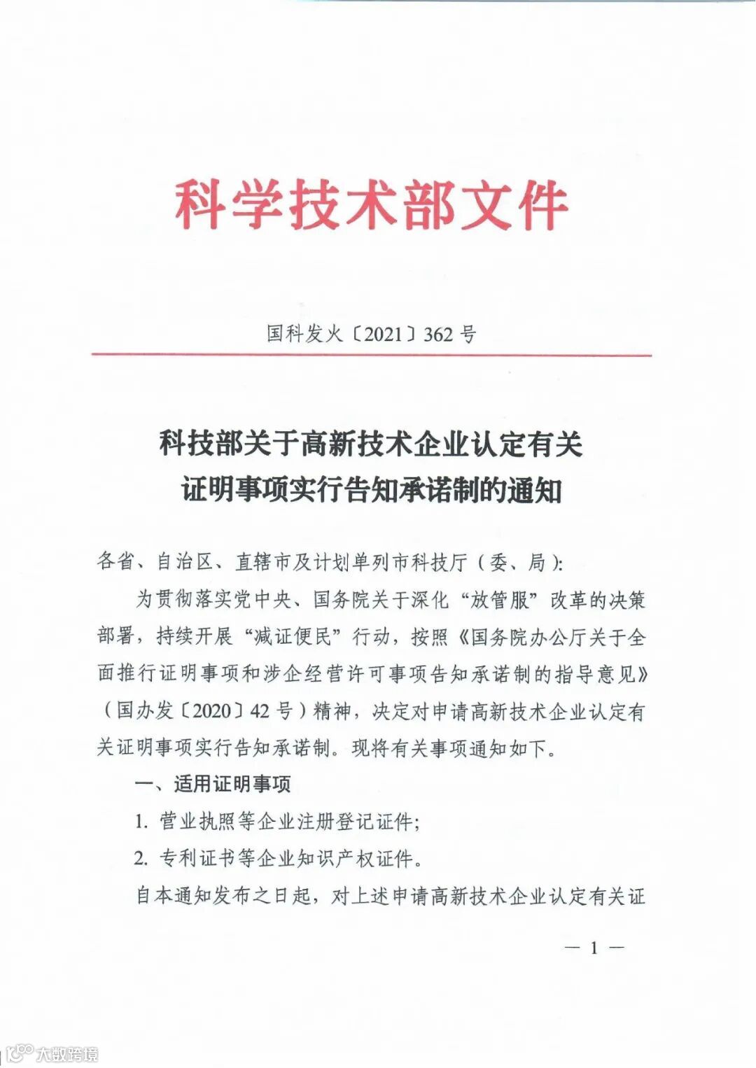 【政策资讯】科技部关于高新技术企业认定有关证明事项实行告知承诺制的通知