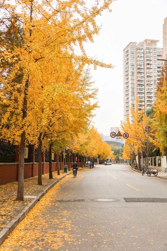 作为新增的市级落叶不扫景观路之一,天中路这条宝藏马路上的银杏树,可以媲美长宁的“黄金城道”。