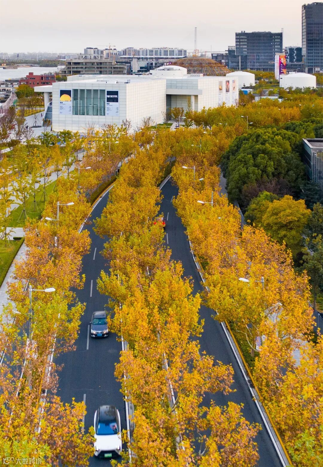 黄浦江岸,水天之间。上海西岸仿佛打翻了的调色盘,秋意满满。