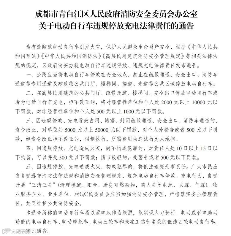 电动自行车及电池禁止进楼入户停放、