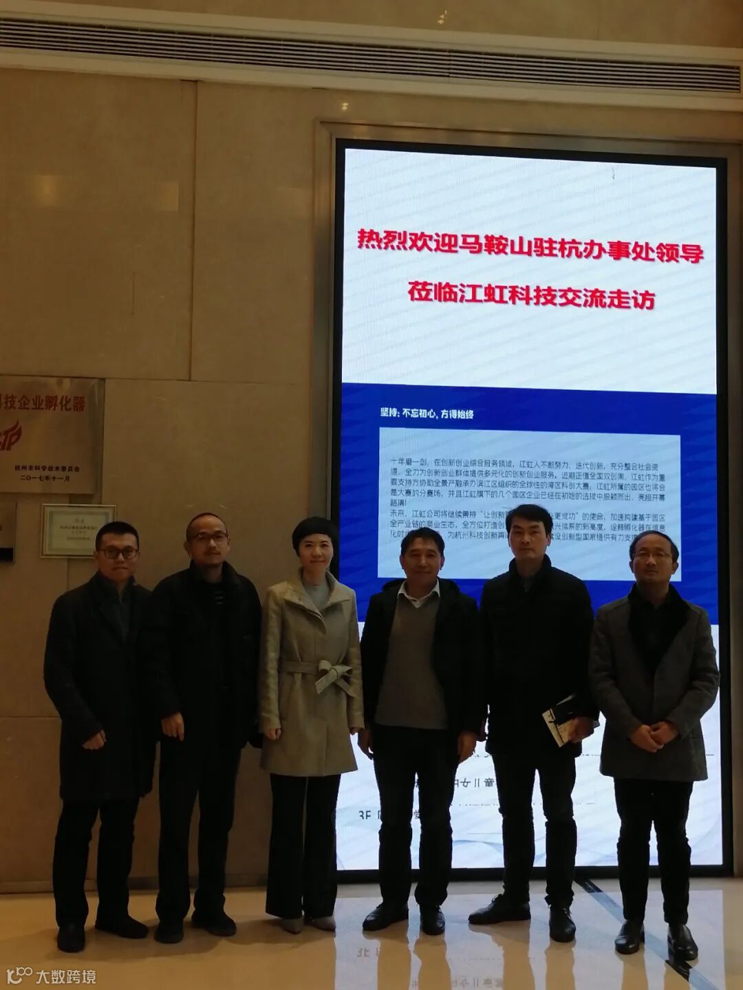 今日下午,马鞍山驻杭办事处领导莅临杭州江虹科技有限公司交流走访。杭州江虹科技有限公司执行董事王起、总经理宋俊杰、杭州万殊科技服务有限公司董事李根热情接待并陪同。