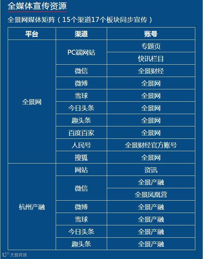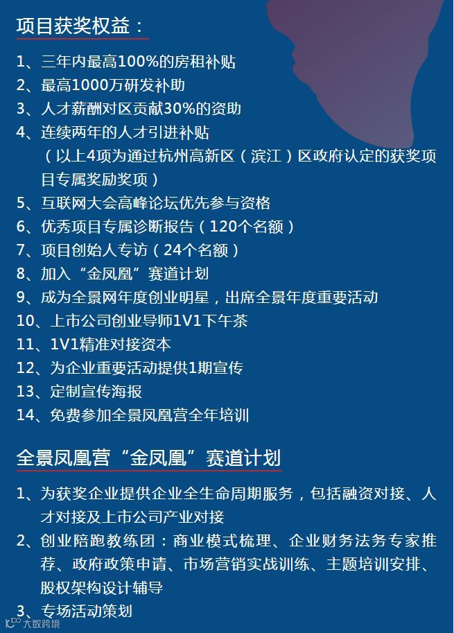 全景网作为服务于企业全生命周期、资本价值管理的综合服务平台,紧跟全球湾区经济及中国经济转型升级的时代大趋势,举办“全景凤凰营·湾区科创大赛”,立足杭州,面向全球,旨在发掘、引进国内外优秀的技术和创业团队,打造一个创新技术与资本对接,创业团队与上市公司对接,项目与投资机构对接,落地项目与园区对接,市场化运作与政府政策对接的资源共享平台,为海内外创业创新项目提供合作发展的综合服务,实现成果转化落地,促进产业与资本融合发展,推动中国产业升级转型。
