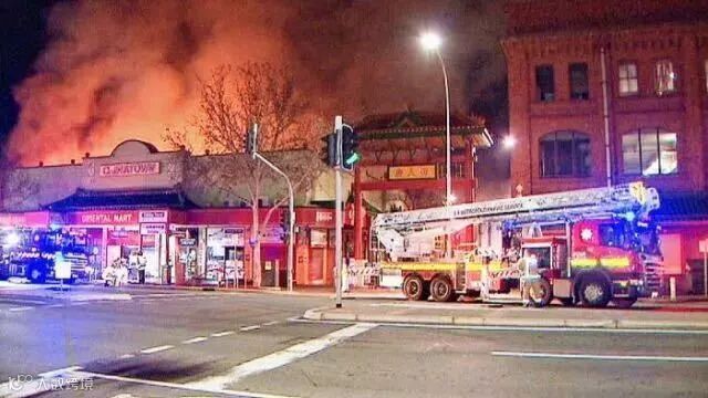 7月3日周二凌晨1点左右,阿德莱德Adelaide市市中心区域中国城Chinatown内的一栋建筑物突发大火,并迅速蔓延,发展至 ‘警报4级’高危态势;路人报警后,共75名消防员、17辆消防车迅疾赶至现场实施救援,无奈火势汹涌,一个小时后才被有效控制。