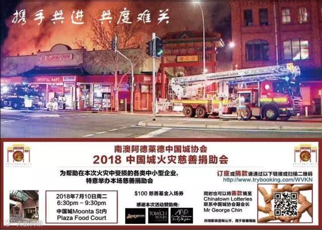 2018年7月10日周二晚6点半至9点半,由非营利组织南澳阿德莱德中国城协会联合华人议员Jing Lee李菁璇女士、Adelaide Business & Professionals以及Chinatown Plaza等举办的中国城火灾灾后拍卖募捐晚会,于中国城内的Plaza Food Court成功举办。