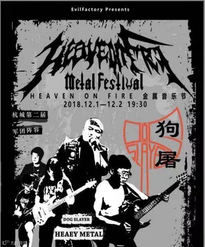 狗屠乐队(Dog Slayer)是唯一一个连续两届参加 Heaven on Fire金属音乐节的乐队,本次演出也是乐队年内最后一次在本地亮相。作为杭州本土为数不多的传统重金属乐队,乐队凭借一贯的老派风格获得了大量 乐迷的热爱,在中国目前的老派金属复兴大潮中,狗屠势必是一股不可忽视的力量!