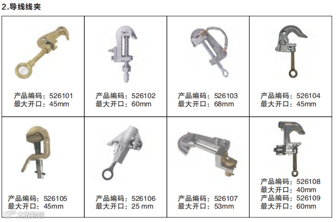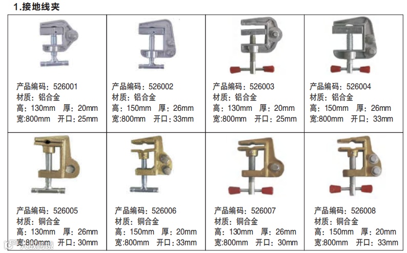 :材质包括铝合金、铜合金、镀锡铜等,开口尺寸 25-70mm 不等,适配不同接地体,安装便捷; - 线夹