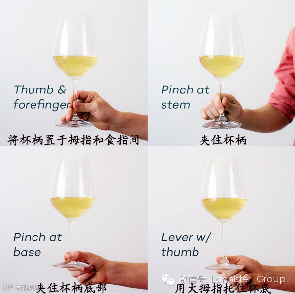 品酒时,握住杯柄是标准正确的姿势,原因如下: