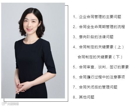 本期主要为大家重点讲解合同制定的关键要素下篇以及合同审查、谈判、签订的要素、合同履行过程中的注意事项、合同关闭后的管理问题 …… 课程将继续杨甜律师的一贯讲课风格,用实实在在的案例,带着大家从实务操作中出现的问题入手,一起剖析案例,找寻答案,总结经验教训,呈现干货要点。