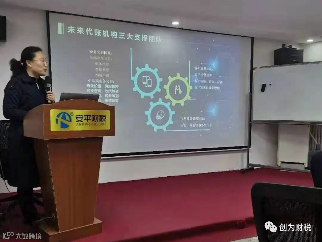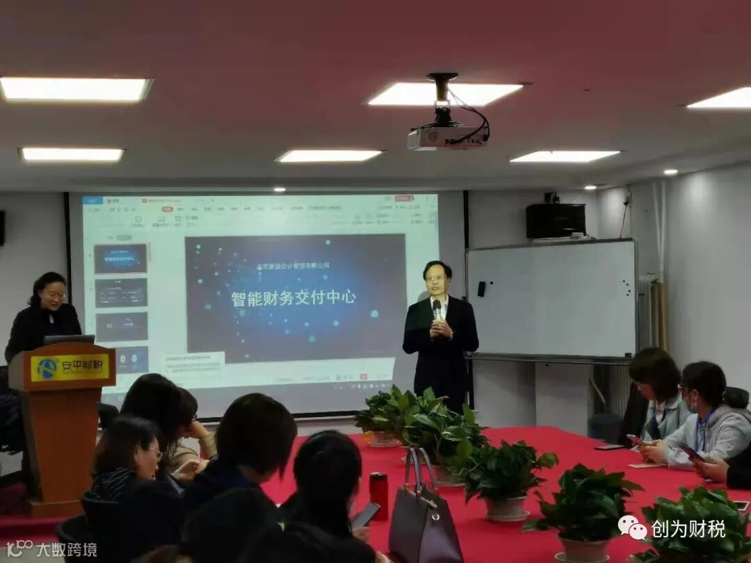 在安平集团,天玺共享企业管理的魏总到此和团队分享经验,畅想未来代账机构团队新发展,并冀望科技的变革为智能财务交付中心赋能。