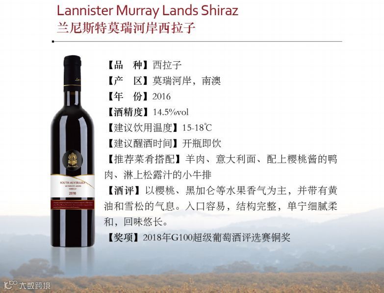 兰尼斯特南澳慕瑞河岸西拉子 2016