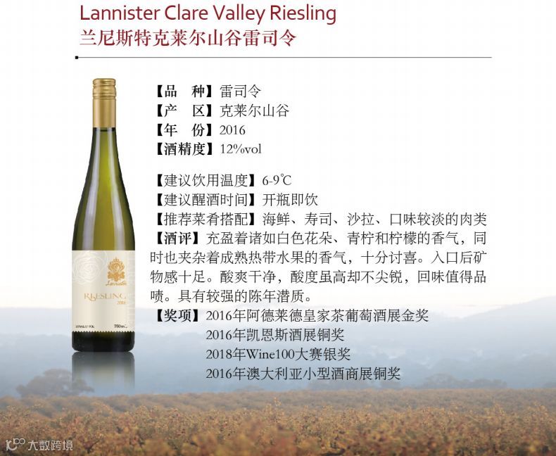 兰尼斯特巴罗萨谷老藤西拉 2016