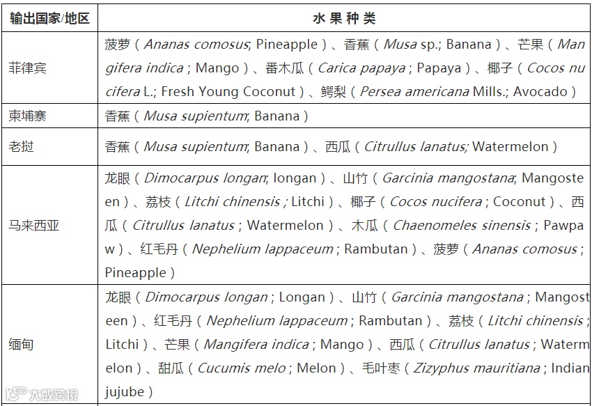 2、查看拟进口的水果是不是在允许进口水果名录之内,具体可参考海关总署网站《获得我国检验检疫准入的新鲜水果种类及输出国家地区名录》。