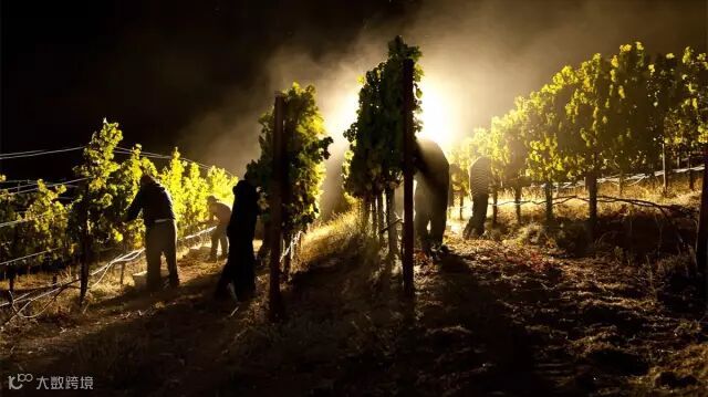 选择合适的采摘时间也是非常重要的,目的就是为了尽可能地获得理想成熟度的葡萄,并避免高温天气对葡萄采摘的影响。在气候温暖或炎热的地区,夜晚采摘的方式很常见。