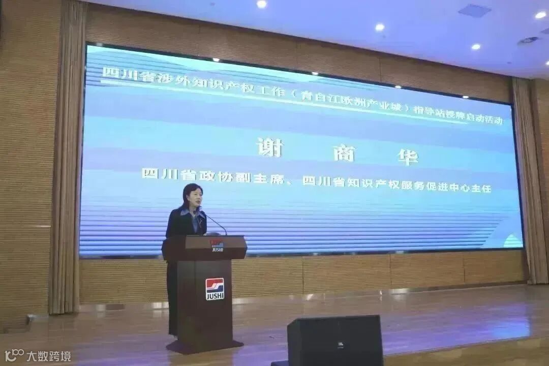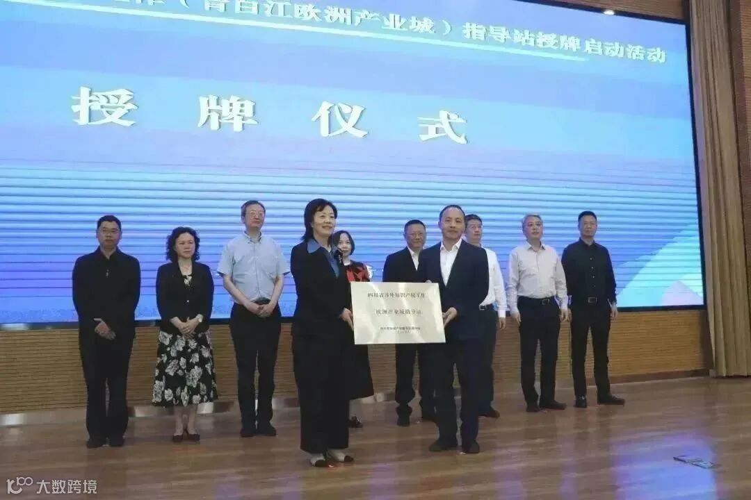 四川省政协副主席、省知识产权服务促进中心主任谢商华为“四川省涉外知识产权工作(青白江欧洲产业城)指导站”授牌。