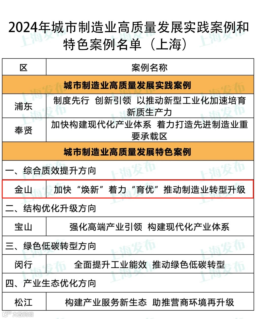 【转型探路】喜报!金山这个案例入选2024全国城市制造业高质量发展案例名单→