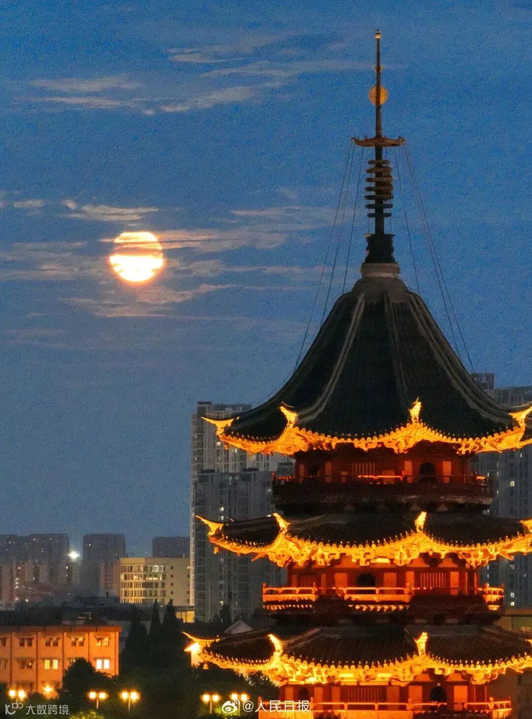 此外,在中秋节傍晚,公众看到的月亮从东边的地平线上升起,月亮处于比较低的高度,有了地面的参照物,也会显得更大一些,是一种视觉效果。