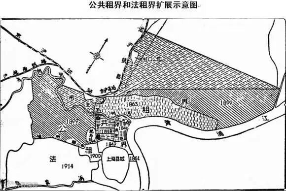 上海公共租界和法租界扩张示意图