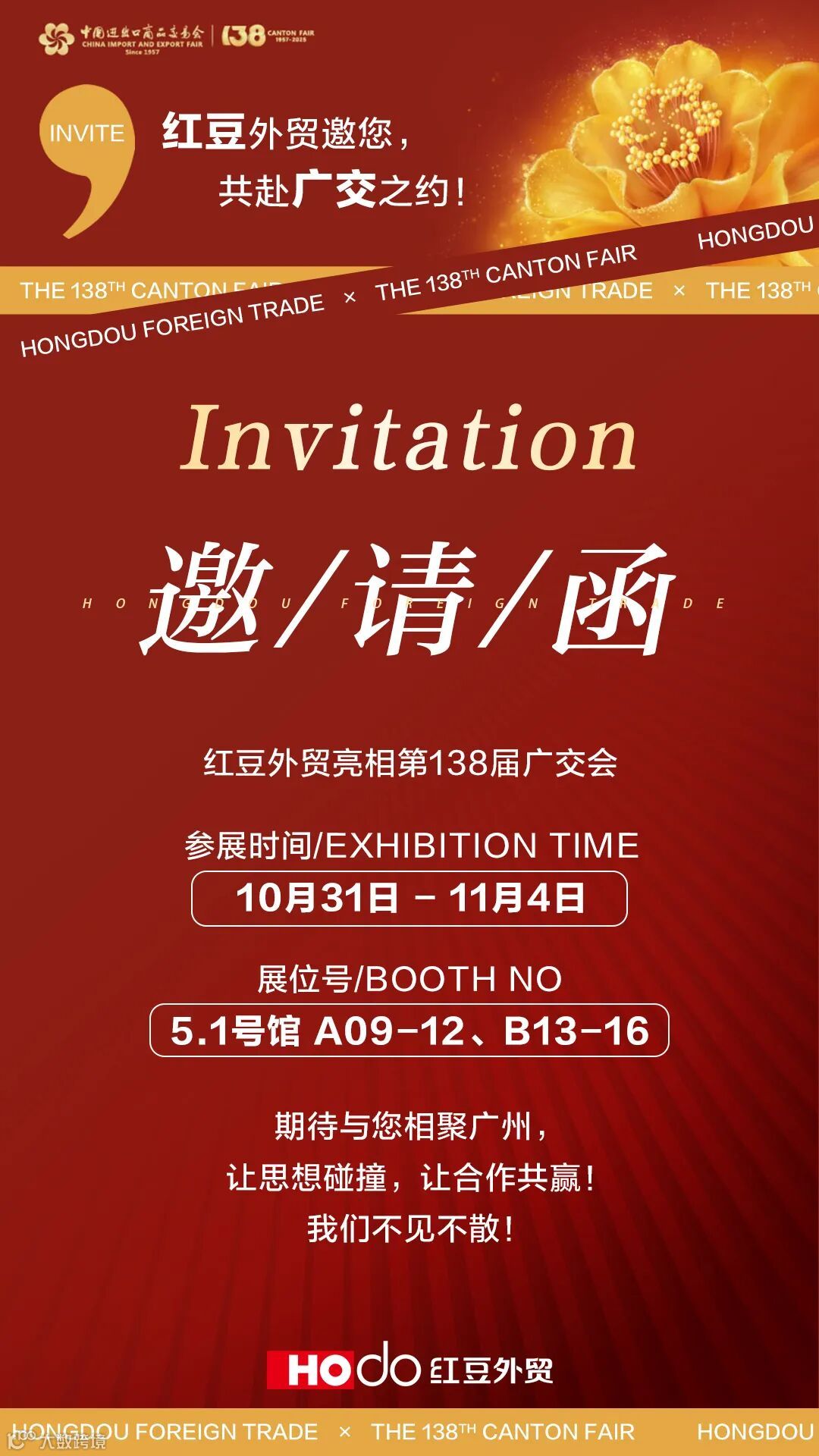 秋意正浓,商机涌动。第138届广交会在广州如期开幕,这场被称为中国外贸“晴雨表”和“风向标”的盛会,再次以庞大的规模和崭新的姿态吸引了全球的目光。红豆外贸也将于10月31日-11月4日携一系列明星产品亮相第三期展会现场,向全球客商展示红豆在产品设计、生产能力、供应链管理等方面的“硬核实力”与“创新活力”。