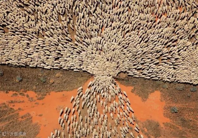 一群绵羊穿过大门